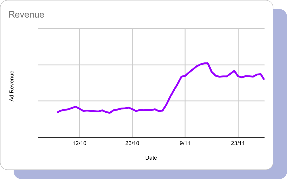 Together with AI-powered dynamic floor pricing, these optimisations maximised competition and ensured each impression was monetised at its optimal value.